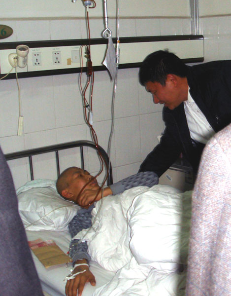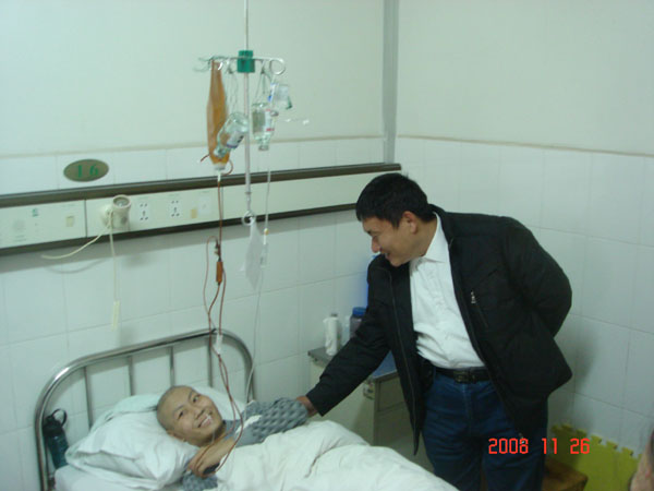 劉小龍,一個(gè)20歲的年輕小伙子,曾經(jīng)在公司車間工作。一個(gè)風(fēng)華正茂的年齡一個(gè)正是爭(zhēng)取自由的年齡,一個(gè)積極上進(jìn)勤奮好學(xué)的小伙子,不幸卻在今年八月中旬被檢查出得了白血病。多么令人可怕的字眼,多么令人討厭的病痛,但不幸確確實(shí)實(shí)在我們身邊發(fā)生了。病痛一天天在折磨他、在打擊他,拍片、輸血、輸液、化療......,父母的勞累自不必說(shuō),巨額醫(yī)療費(fèi)用也讓這個(gè)家庭難以承擔(dān)。24日晚全豐公司董事長(zhǎng)王志國(guó)及工會(huì)主席陳志靜攜公司其他成員一行六人專程去醫(yī)院探望了劉小龍及其家人,這些情況全豐公司的領(lǐng)導(dǎo)看在眼里急在心里,看到自己的兄弟在忍受痛苦,領(lǐng)導(dǎo)們的心情非常沉重。
