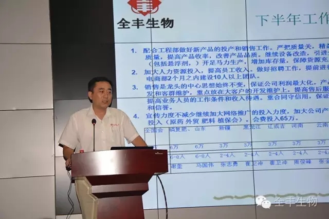 總結經(jīng)驗,發(fā)現(xiàn)問題,解決困難,展望未來。為了更好的服務廣大客戶和廣大的種植者,踐行“全心服務,豐收萬家的”的不懈追求。2016年7月6日在全豐集團新廠區(qū)的多功能報告廳,舉行了為期一天的專家技術講座和經(jīng)營工作匯報。