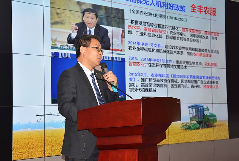 安陽全豐航空植??偨?jīng)理周國強(qiáng),做了《淺談我國植保無人機(jī)的現(xiàn)狀與應(yīng)用》主題匯報,系統(tǒng)介紹了我國航空植保產(chǎn)業(yè)的發(fā)展現(xiàn)狀、植保無人機(jī)的應(yīng)用情況、以及對我國航空植保行業(yè)發(fā)展前景的展望。