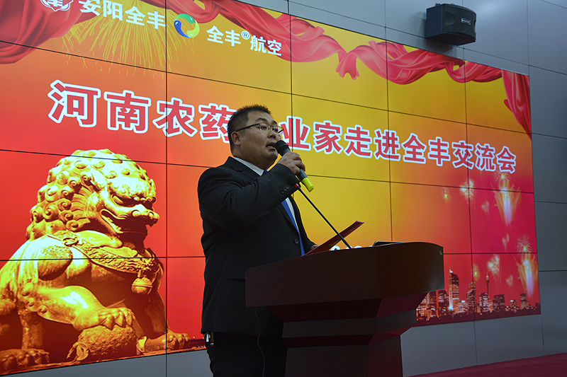 交流會由安陽全豐經(jīng)營副總張曉林主持。會議開場由安陽市農(nóng)業(yè)局副局長朱麗英女士致辭,歡迎來自河南省農(nóng)藥行業(yè)的企業(yè)家們來到古都安陽,并先后介紹了安陽市農(nóng)業(yè)發(fā)展?fàn)顩r,以及全豐生物科技大力發(fā)展航空植保統(tǒng)防統(tǒng)治取得的顯著成效。