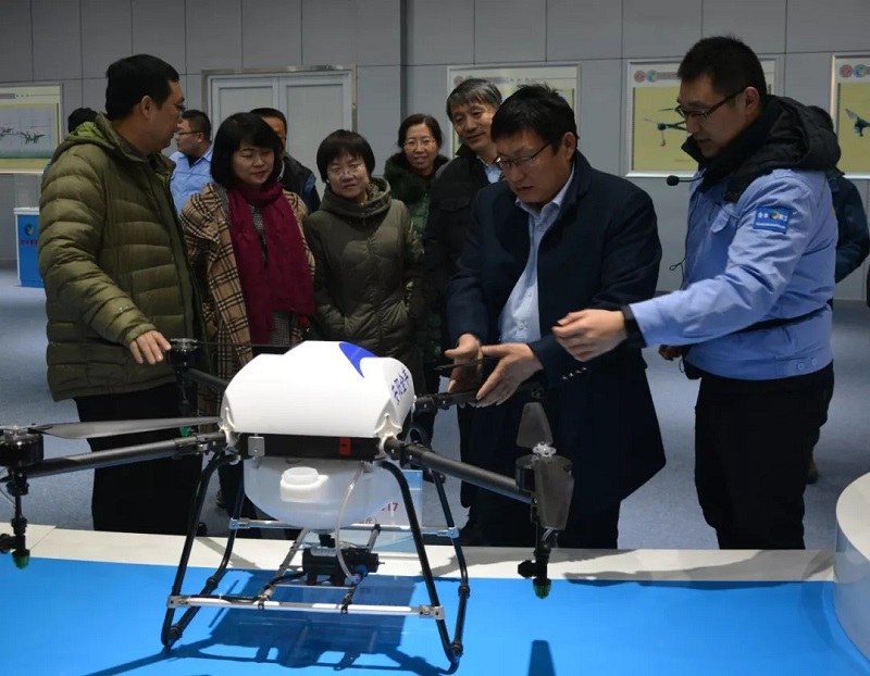 全豐董事長王志國向各位領(lǐng)導(dǎo)專家等講解全豐自由鷹多旋翼無人機(jī)