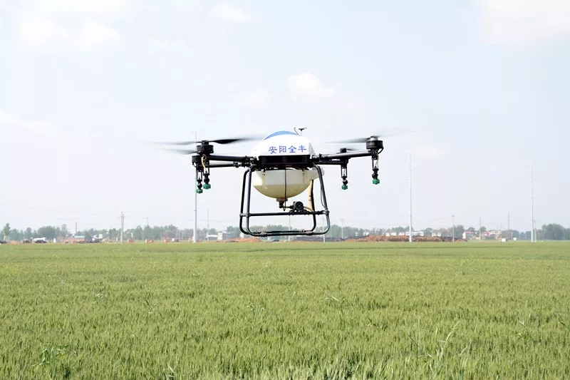 隨后,一行人來到作業(yè)現(xiàn)場,正在進行飛防作業(yè)的隊員們接受領(lǐng)導和專家的檢閱。綠油油的麥田上空,全豐自由鷹和全球鷹同時起飛,可實行自主飛行,精準噴灑,支持遙控器手機規(guī)劃航線,多種踩點方式!