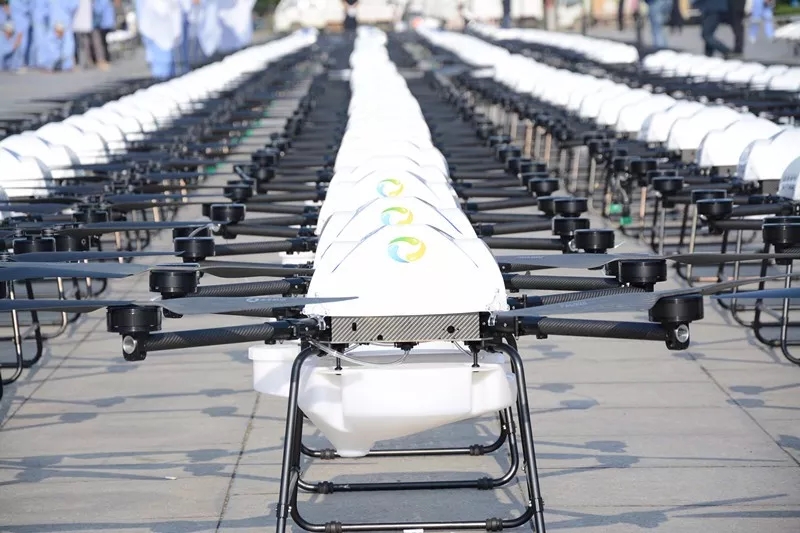 本次啟動儀式匯聚了植保作業(yè)飛手一千余人,油動和電動植保無人機一千架。中國農(nóng)業(yè)技術(shù)推廣協(xié)會會長陳生斗,農(nóng)業(yè)農(nóng)村部全國農(nóng)業(yè)技術(shù)推廣服務(wù)中心書記魏啟文,農(nóng)業(yè)農(nóng)村部農(nóng)藥檢定所副所長劉學,農(nóng)業(yè)農(nóng)村部種植業(yè)管理司調(diào)研員王建強,河南省農(nóng)業(yè)廳副廳長鄒慶鵬,河南省農(nóng)機局局長凌中南,中國農(nóng)業(yè)技術(shù)推廣協(xié)會常務(wù)副秘書長張互助,農(nóng)業(yè)農(nóng)村部全國農(nóng)業(yè)技術(shù)推廣服務(wù)中心王鳳樂,農(nóng)業(yè)農(nóng)村部農(nóng)藥檢定所處長楊峻、張宏軍,中國農(nóng)藥工業(yè)協(xié)會會長孫叔寶,華南農(nóng)業(yè)大學教授蘭玉彬,中國社科院當代中國研究所研究員王瑞芳,中國農(nóng)業(yè)大學教授何雄奎,以及河南省農(nóng)業(yè)廳藥檢站、植保站種植業(yè)處等相關(guān)領(lǐng)導和安陽市農(nóng)業(yè)局、農(nóng)機局、植保站等相關(guān)人員共同參加本次活動。央視一套、七套、農(nóng)資導報、中國農(nóng)資、農(nóng)民日報等媒體共同見證本次盛會。陳生斗會長做了會議講話,魏啟文書記宣布安陽200萬畝小麥病蟲害航空植保統(tǒng)防統(tǒng)治正式啟動。安陽市人民政府副市長劉建發(fā),中國農(nóng)技推廣協(xié)會植保統(tǒng)防統(tǒng)治分會會長、安陽全豐董事長王志國發(fā)言致辭,農(nóng)業(yè)農(nóng)村部相關(guān)領(lǐng)導和專家學者將為飛手隊伍一一授旗,最后千余名飛手現(xiàn)場宣誓——為安陽200萬小麥病蟲害航空植保統(tǒng)防統(tǒng)治盡心盡責,全心服務(wù),高質(zhì)高效完成任務(wù)。