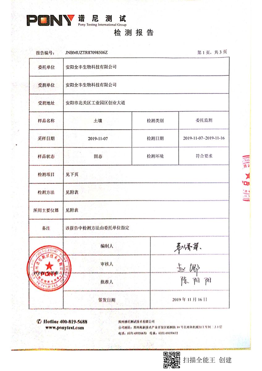 安陽全豐生物科技有限公司土壤自行監(jiān)測報告
