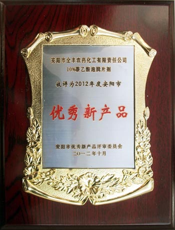 全豐集團(tuán)10%萘乙酸泡騰片劑榮獲2012年度“安陽(yáng)市優(yōu) 秀新產(chǎn)品”